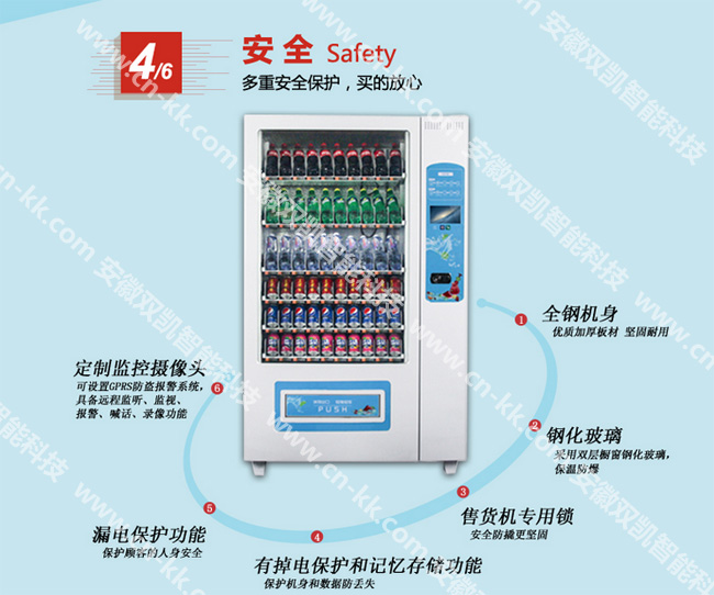 ②鋼化玻璃 安徽雙凱采用雙層櫥窗鋼化玻璃,相比一般市場上的自動售貨機更加結實耐用,保溫防爆。